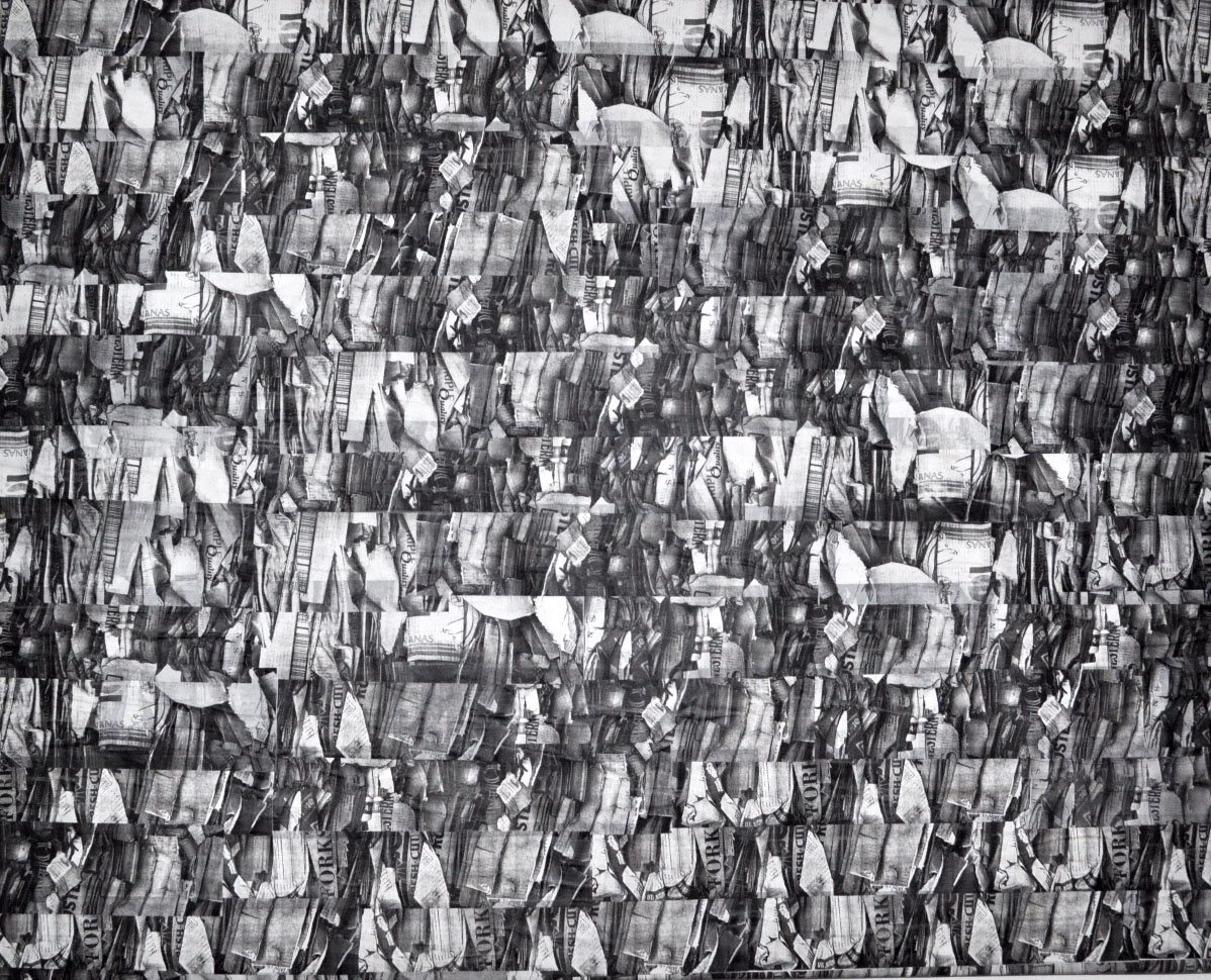 After taking photographs of mundane images, Smith slices them apart and ressembles them on large-scale vellum works. Small details overlooked by most people are what makes Smith’s works work. His new pieces seem to stitch together photographs like a fine weave.
